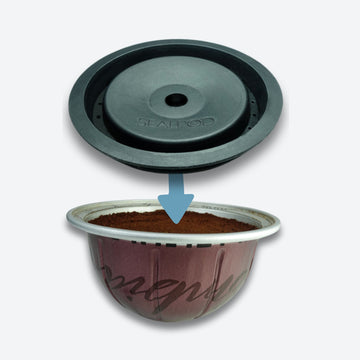 Reuse your Vertuo capsule by removing the aluminum cover and replacing it with the SealPod reusable cap.
